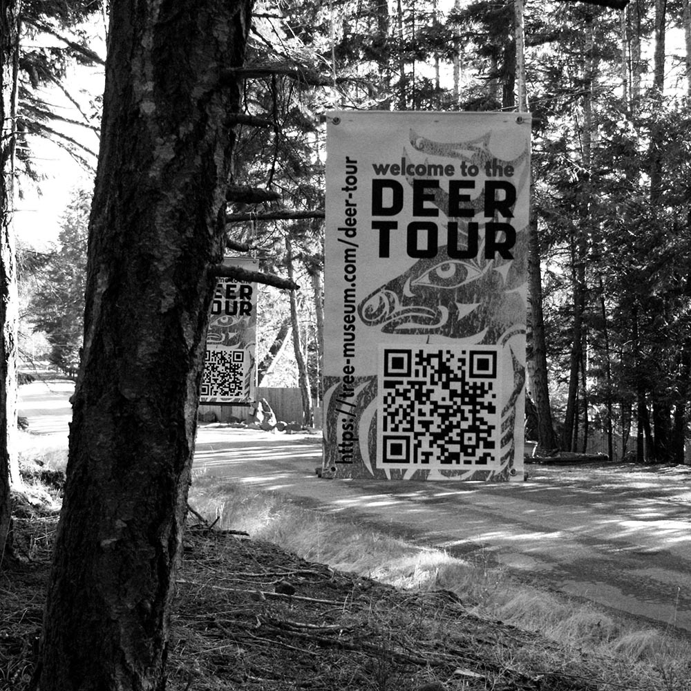 The Deer Tour takes listeners through 8 episodes of musically enhanced audio stories, anecdotes and reflections on settler colonial and indigenous relations to deer that explore wider questions of human-animal relationships, with a focus on the impact of colonization on the deer’s forested home. Speakers such as Fawn Daphne Plessner (S,DÁYES/Pender Island resident), Earl Claxton Jr. (WSÁNEĆ First Nation) and Jeff Corntassel (Cherokee Nation) share stories that open up an examination of the aesthetics and politics of human exceptionalism and its implications for deer communities. Themes such as kinship with more-than-human beings, (political) membership, treaties with animals, the notion of sanctuary, trophy hunting, killing and illness are explored. The tour is accessible virtually, but is also situated on S,DÁYES/Pender Island, which is within the unceded territory of the WSÁNEĆ First Nation. As an audio experience that is mindful of the legacy of human and animal relations within WSÁNEĆ territory, the Tour aims to enact one of core values of WSÁNEĆ Law: "That the origin of the living things of this world are our ancient relatives, and that they must be treated with respect.”
